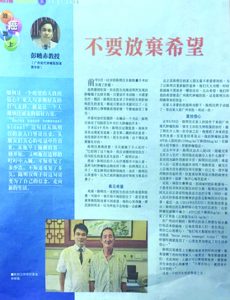 2015年12月2日,马来西亚《光明日报》刊登了广州现代肿瘤医院专题报道,彭晓赤教授以乳腺癌患者王优华的抗癌经历为例,讲述积极乐观心态对抗癌的重要性。 彭晓赤教授称,由于癌症患者对自身疾病进展恶化充满恐惧和担心,因此,在临床上,肿瘤患者出现抑郁和焦虑情绪的现象比较多见。患者常表现为紧张不安,易激怒,烦躁,同时伴有失眠、多梦、心悸、出汗等。 但是王优华女士却例外,她自患上乳腺癌以来,脸上依然带着微笑。彭教授在查房时问她:“今天外面阳光灿烂,但您的笑容比阳光还要灿烂,有什么好事说出来跟大家分享分享?”她说:“我一直都很开心,虽然得了这个病,是一件很痛苦的事,但我不要让自己难受,我要给自己快乐。生病前我爱世界旅游,生病后我更喜欢看愉悦的、高兴的、开心的东西,旅游是我的第一选择,。” 王优华蝉联了三届广州现代肿瘤医院举办的“国际抗癌明星”。癌症对于她来说是一场别样的人生磨练,与癌症抗争的过程中,她有一个成功抗癌经验,就是乐观治疗,快乐传递。2011年,到中国旅游的王优华,因为腹泻来广州现代肿瘤医院做体检,查出右乳房内有恶性肿瘤。四天后,她做了右乳癌根治术,后来,她的病情逐渐好转。每次来院复查,她都要进行一次生物免疫治疗,提高自身免疫力。由于生物免疫治疗需要抽血培养,过程需要十余天,爱好旅行的她和丈夫通常会利用这段时间在中国旅行。2012年6月,当他们从新疆、内蒙古旅行回到广州时,王优华兴奋地说:“旅途中我精神非常愉快,身体也因此变得很轻松,一点都没有生病的感觉。旅途中,别人都说根本看不出来我是一名病人。心情好,身体就好。肿瘤5年内不复发,就算是临床上治愈,我有这个信心。” 彭教授非常支持她经常去旅行,他认为旅行给病人一种心理的抚慰,是一种心理治疗。截至目前,王优华的肿瘤未曾复发。彭教授指出,医生在帮助肿瘤病人解决疾病痛苦时,也要帮助病人减轻心理的痛苦,让病人把自己的心态调整到最佳,最稳定的状态,医生才能更好地运用最好的技术为病人进行治疗,创造出生命的奇迹。See more