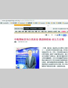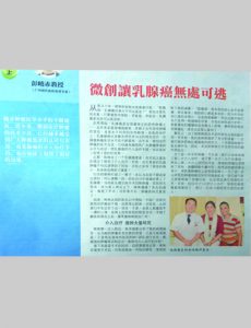 2015年11月11日,马来西亚《光明日报》刊登了“微创让乳腺癌无处可逃”的文章报道,文中,广州现代肿瘤医院首席专家彭晓赤以乳腺癌患者米米(Mimie)为例,详细介绍了微创技术治疗乳腺癌的疗效。 据彭教授介绍,一直以来,在临床治疗上,乳腺癌绝大多数采用手术为主的综合治疗。但随着肿瘤医学水平的不断提高,近年来,治疗肿瘤的新技术——微创技术,已经越来越受到广大肿瘤患者的认可和欢迎。治疗乳腺癌的介入疗法,也在临床上取得了很好的效果。近期,彭教授接收了一个来自菲律宾的乳腺癌患者米米,她进行介入治疗后,不但肿瘤迅速得到了控制,而且她的身体也恢复得很快。 2015年2月,米米被确诊为乳腺癌,菲律宾当地医生建议她做乳房切除术+化疗,考虑到化疗的痛苦,米米拒绝了。后来医生推荐她到广州现代肿瘤医院治疗,因为那里有微创技术,治疗痛苦少。同时,她的邻居也到过广州现代肿瘤医院治疗乳腺癌,治疗效果良好,也推荐她到那里。最后,她决定到中国治疗癌症。2015年3月,米米和他的丈夫来到了广州现代肿瘤医院。专业的MDT团队为她制定了以介入治疗为主的治疗方案。首先,医生先给她做生物免疫来提高免疫力,接着让她做了介入治疗以及服用中药。治疗后,米米几乎没有任何的副作用,而且她的肿瘤快速缩小到1.03cm。为了让肿瘤能过彻底消除避免复发转移,米米接受了肿瘤切除术以及周边淋巴结清扫手术,术后,米米继续做了三次介入治疗,身体恢复很快,胃口、饮食以及睡眠等方面都非常好,生活恢复正常。See more